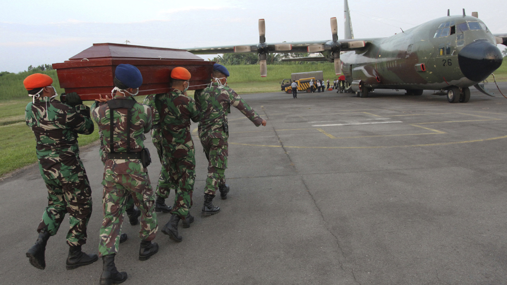 Индонезийский военно-транспортный самолет с телами жертв авиакатастрофы и родственниками погибших на борту не смог взлететь из-за технических неисправностей.