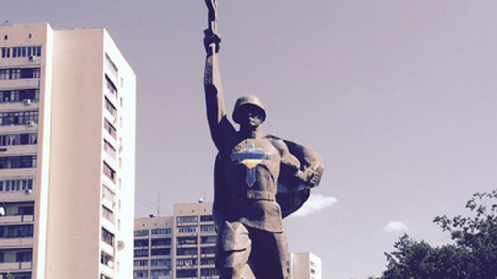 На Украине осквернен очередной монумент советских времен. В Харькове вандалы нарисовали на груди памятника Воину-освободителю сердце цветов украинского флага.
