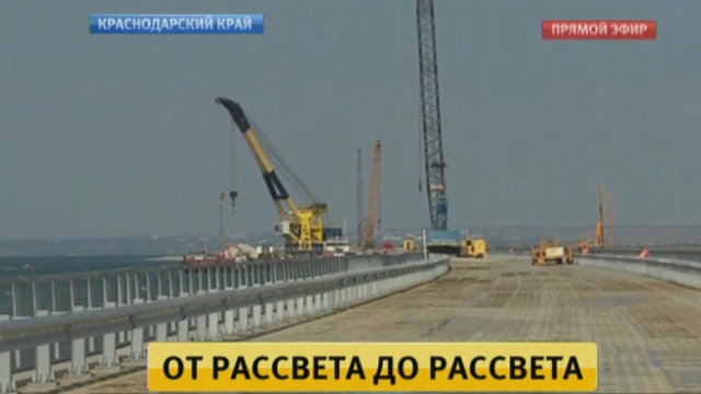 В Керченском проливе, где уже через три года должен появиться почти 20-километровый мост между Краснодарским краем и Крымом, строительные работы идут 24 часа в сутки, 7 дней в неделю. На первом этапе сооружают так называемую техническую переправу. Из-за сложного грунта и рельефа специалисты применяют уникальные технологии. Большое внимание уделяют и тому, чтобы не навредить уникальной природе.