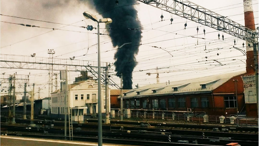 Очевидцы сообщили о крупном пожаре, который вспыхнул в районе Курского вокзала. Стоб дыма растянулся на несколько метров и виден даже в центре Москвы.
