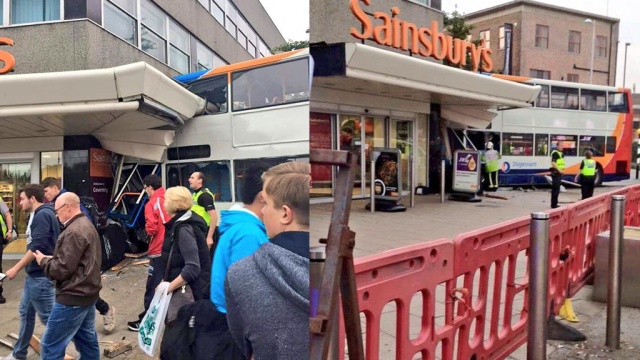 В английском городе Ковентри восемь человек получили травмы после того, как двухэтажный пассажирский автобус на полной скорости врезался в здание магазина.