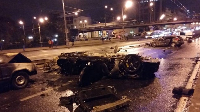 ДТП произошло в четверг поздно вечером на Крымском мосту. Автомобиль Ferrari на большой скорости вылетел на встречную полосу, где столкнулся с двумя автомобилями. От удара две машины загорелись — Ferrari выгорел полностью.