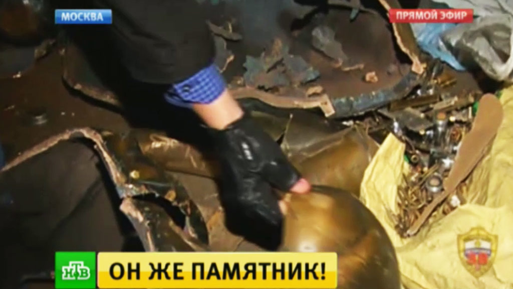 Памятник Леонову исчез с аллеи кинозвезд на Мосфильмовской улице в ночь на пятницу. Момент преступления зафиксировала камера наблюдения. На кадрах видно, как несколько человек подъехали на «Газели», буквально вырвали бронзовую фигуру из земли, погрузили и уехали. Попали злоумышленники в объектив при разгрузке монумента.
