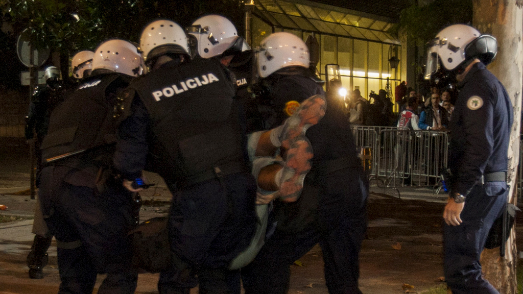 Полиция в очередной раз применила слезоточивый газ для разгона митингующих на улицах Подгорицы. Демонстранты требуют отставки правительства.