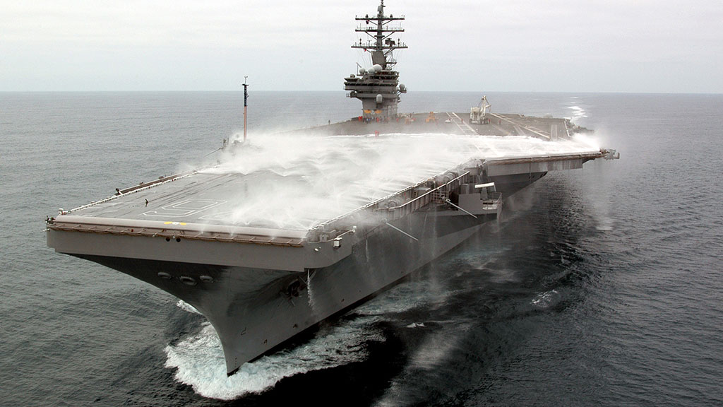 «Рональд Рейган» (USS Ronald Reagan), принятый в состав ВМС США в 2003 году, считается одним из крупнейших в мире боевых кораблей. Он может нести до 90 самолетов и вертолетов. В Японию на постоянное базирование авианосец прибыл 1 октября.