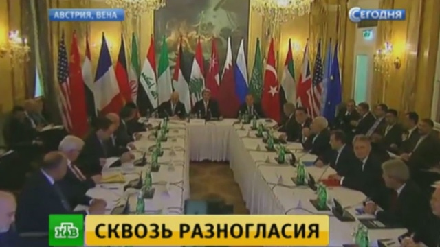Праздничный зал отеля «Империал» в Вене — именно здесь проходили многосторонние, 19 делегаций, и многочасовые, почти 8 часов, переговоры по Сирии. Практически все ключевые международные игроки по Ближнему Востоку: от постоянных членов Совета Безопасности ООН, включая Китай, до стран залива и соседей Сирии, включая Иран, который впервые приглашен на такие переговоры. Страны, чьи интересы затрагивает происходящее, и страны, фактически вовлеченные в конфликт — некоторые напрямую поддерживают там те или иные силы.