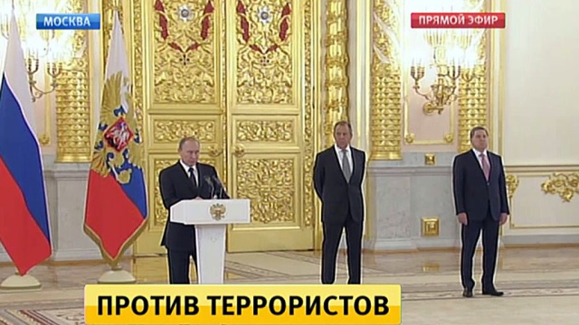 Владимир Путин: «Мы считаем абсолютно необъяснимыми предательские удары в спину от тех, в ком мы видели партнеров и союзников по антитеррористической борьбе. Имею в виду инцидент со сбитым турецкими
