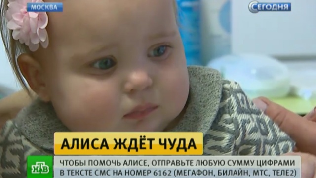 Фонд «Подари жизнь» на этой неделе отмечает день рождения. И лучший подарок — еще одна подаренная жизнь. Чтобы помочь Алисе, отправьте любую сумму цифрами в тексте СМС на номер 6162. Доступно абонентам «Мегафон», «Билайн», МТС, «Теле2».