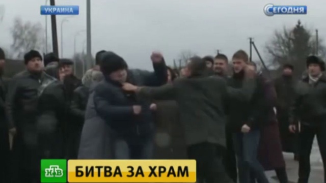 После того, как активисты «Правого сектора» (организация запрещена в РФ) забаррикадировали дорогу к Богу, прорывать блокаду прихожанам приходится собственным телом, передает корреспондент НТВ Сергей Сыркин.