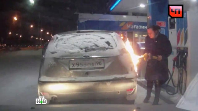 Что именно она хотела разогреть на морозе или разглядеть в сумерках с помощью открытого пламени в момент заправки машины остается неизвестным. Но результат оказался вполне предсказуемым: пары топлива загорелись, пламя моментально охватило бензобак автомобиля и «пистолет» бензоколонки.
