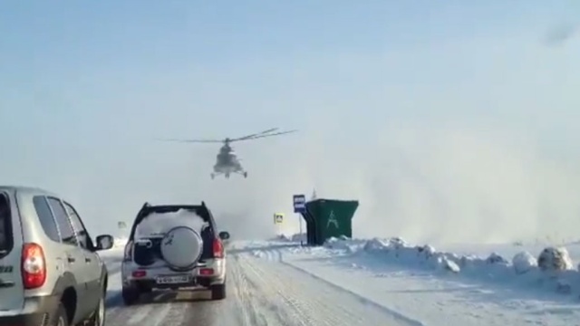 Вертолет Ми-8 приземлился на федеральной трассе М-52 между Барнаулом и Новосибирском.