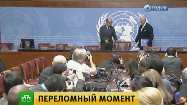 Как отмечает корреспондент НТВ Владимир Кобяков, мировая пресса ждет начала женевских переговоров уже пятый день. Лишь сегодня стало известно, что спецпредставитель ООН начнет переговорный процесс со встречи с официальной правительственной делегацией Дамаска, то есть с теми, кого уполномочил Башар Асад.