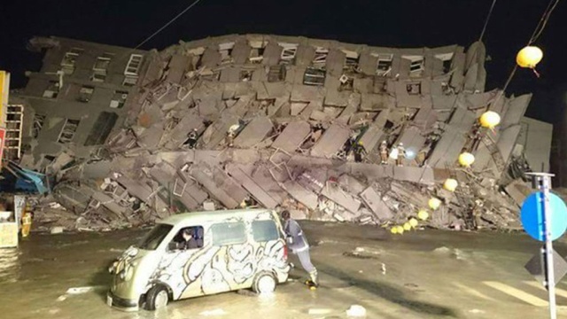 Сильное землетрясение произошло на Тайване. В городе Тайнань здания накренились и оказались смяты в гармошку.