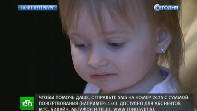 Как передает корреспондент НТВ Илья Федосов, петербургские медики предложили несколько методов, позволяющих сохранить Даше глаз, но подобных операций в городе произведено слишком мало, риск велик, медицинские согласования займут месяцы. За это время клиническая картина может измениться.
