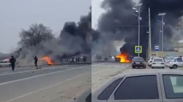 Последствия взрыва на посту КПП «Джемикентский» в Дербентском районе Дагестана были сняты на видео свидетелями происшествия.