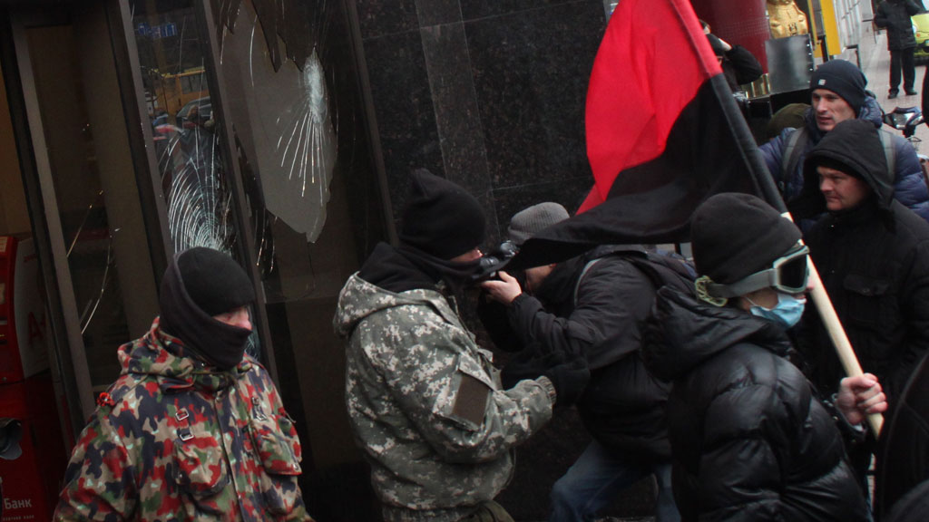 При этом, отмечает УНН, радикалы, среди которых есть и бывшие члены «Правого сектора» (организация запрещена в РФ), готовы оставаться на площади и дольше, если возникнет необходимость.