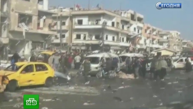 Первые взрывы прогремели в городе Хомс, где взлетели на воздух два микроавтобуса.