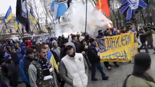 В Одессе впервые после трагедии в Доме профсоюзов прошел организованный марш футбольных болельщиков и членов патриотических организаций.