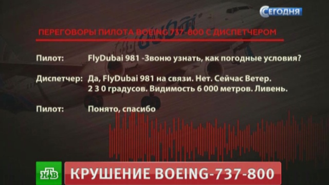 Диспетчер: «Fly Dubai 981, Мы на связи. Ветер, дождь, туман, турбулентность».