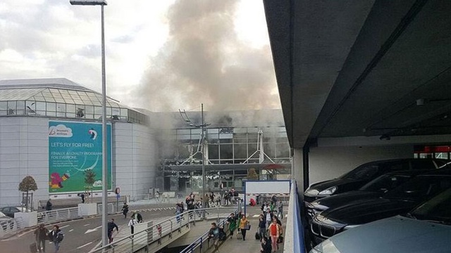 video of evacuation at Brussels airport after multiple explosions pic.twitter.com/kDsWxPVN1M