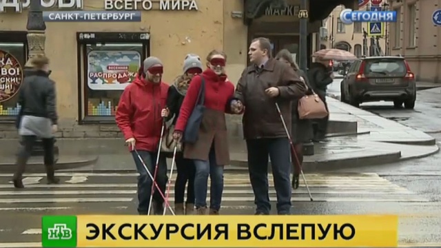 Алексей — незрячий от рождения. Экскурсантов он знакомит со своим Петербургом, где нет ни дворцов, ни живописных каналов, а есть только запахи и звуки. Каждому перед началом прогулки выдают трость и повязку на глаза. Один из красивейших городов мира погружается во тьму, и она рождает самые разные мысли.