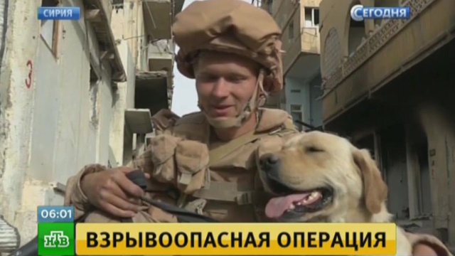 В особенно сложных ситуациях саперы используют роботов. Сейчас в Пальмире работают около 100 российских специалистов. Искать мины им помогают служебные собаки.