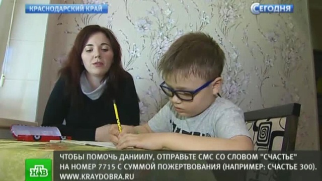 После проведенных операций болезнь отступила. Но, как часто бывает в этих случаях, сильная химиотерапия дала осложнения на здоровые органы. Даниил не видит правым глазом, глух на одно ухо. Часть лицевых мышц атрофирована. У ребенка проблемы с речью. Три раза в неделю — занятия с логопедом и каждый день — домашнее чтение.
