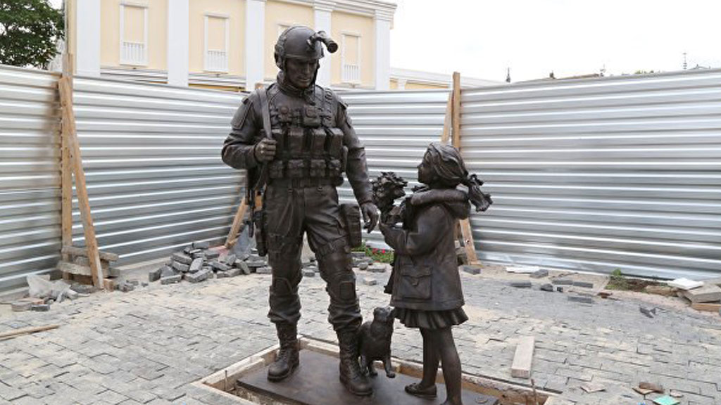 У Государственного совета Крыма в Симферополе готовятся к открытию памятника «вежливым людям». Монумент уже поставили в сквере Республики.