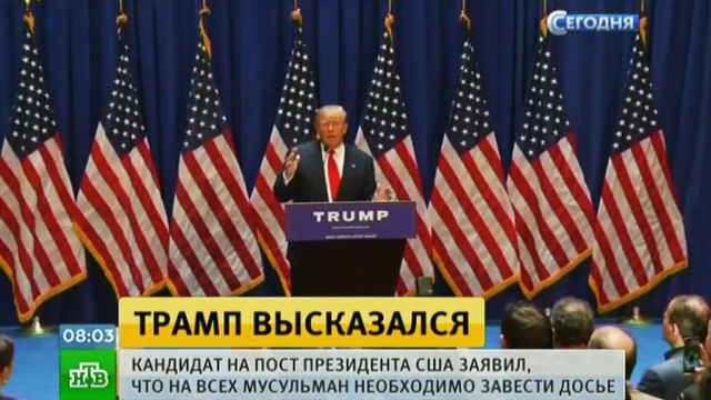 В интервью телеканалу CBS претендент на пост президента США заявил, что на всех мусульман в Америке неплохо было бы завести досье. При этом миллиардер использовал в речи термин «профайлинг». Так в Штатах называют выявление у определенных групп граждан характерных особенностей поведения, присущих преступникам или террористам.