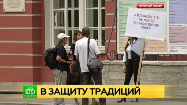 Серия одиночных пикетов прошла перед Главным зданием Санкт-Петербургского госуниверситета.