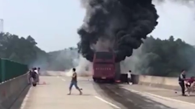 Инцидент произошел сегодня утром в китайской провинции Хунань. В уезде Ичжан автобус врезался в ограждение, после удара произошла утечка машинного масла, которое воспламенилось.