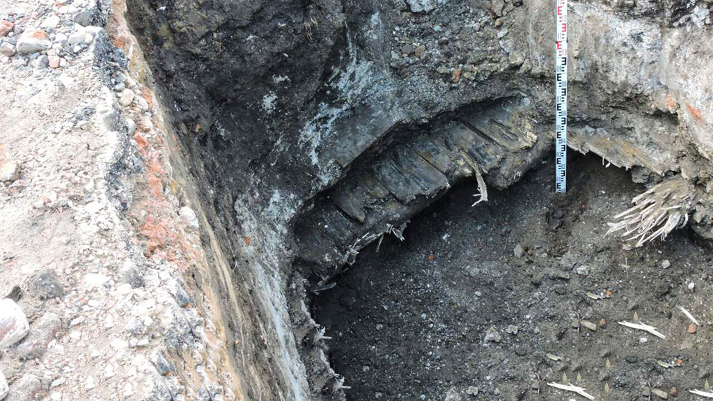 Как сообщает официальный сайт столицы, фрагменты деревянного сруба были обнаружены рабочими во время прокладки каналов для кабельных коллекторов.