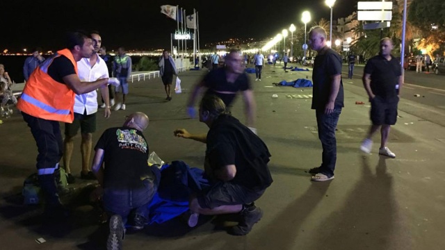 В этот вечер на улицах было много людей, отмечающих национальный праздник Франции — День взятия Бастилии. На видеозаписях, выложенных очевидцами события в соцсетях видно, как сотни человек, включая семьи с детьми, бегут от места, где произошла стрельба.
