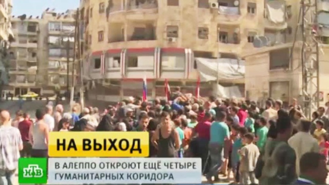 В сирийском городе Алеппо, где проводится гуманитарная операция, открыто три коридора для населения и боевиков, решивших сложить оружие.