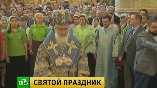 По случаю праздника патриарх Кирилл совершил литургию в Успенском соборе Московского Кремля. В этот день верующие вспоминают погребение Девы Марии.