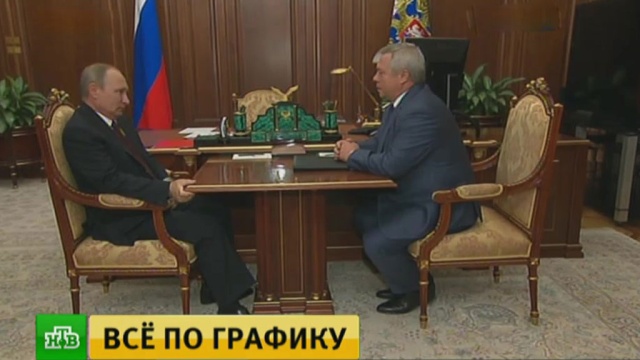 Сегодня в Кремле Владимир Путин встретился с глава Ростовской области. Василий Голубев доложил президенту о развитии транспортной системы региона и рассказал ходе подготовки объектов к чемпионату мира по футболу.