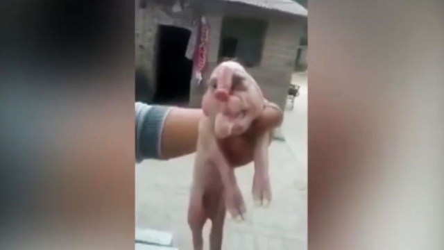 В Китае на свет появился удивительный поросенок-мутант .
