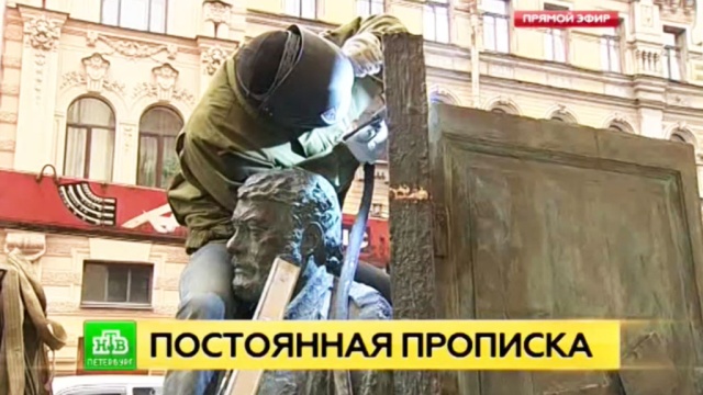 Сергей Довлатов окончательно вернулся на улицу Рубинштейна. В эти минуты петербуржцы могут наблюдать третью попытку установить памятник писателю. Предыдущие не увенчались успехом.
