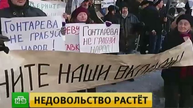 Обманутые вкладчики организовали в Киеве три митинга. Люди требуют отправить в отставку главу Нацбанка Валерию Гонтареву и привлечь ее к ответственности за развал финансовой системы страны. Также демонстранты призывают чиновников снизить тарифы на коммунальные услуги.