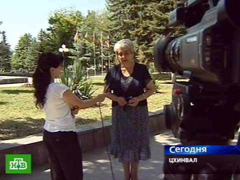 Для оператора Джонни Техова этот вопрос даже больше, чем больной. Сразу после нападения на Цхинвал он сменил камеру на автомат и ушел в ополчение. Корреспондент Мальвина Гиголаева вернулась на канал 16 августа и сразу поехала в центр города брать интервью у тех, кто выжил после атаки. Для этой съемочной группы военная тема уже стала рядовой.