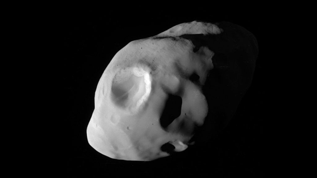 На фотографии, сделанной с расстояния в 40500 километров, видно, что Пандора немного похожа на картофелину, на ее поверхности хорошо видны два крупных кратера. По данным ученых, их диаметр составляет до 30 километров.