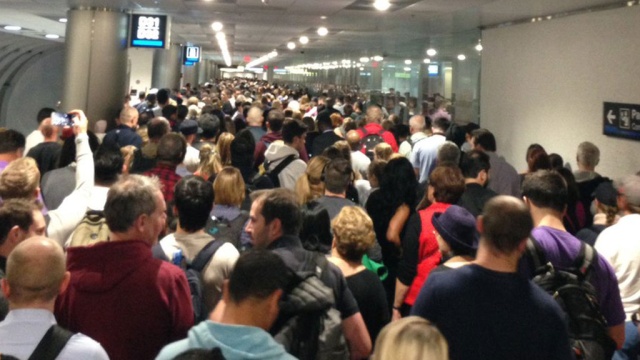 @cnn @nbc @FoxNews please help us. Customs at #Miami airport down. Shoving. Fighting. Panic attacks. Fire hazard pic.twitter.com/0RvO6E8T1x