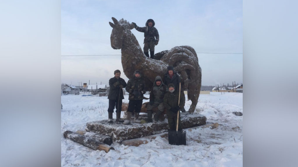 Якутский умелец Михаил Боппосов изготовил из навоза гигантский символ наступившего 2017 года.
