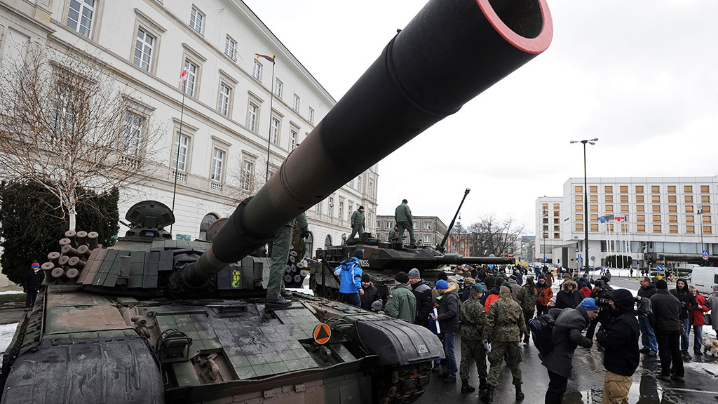 Военные из США прибыли в Польшу в рамках учений «Атлантическая решимость» (Atlantic Resolve). Они пробудут в стране девять месяцев и проведут за это время учебные маневры совместно с европейскими союзниками. В состав бригадной боевой группы входят порядка 3,5 тысячи военных, 87 танков, 18 самоходных гаубиц Paladin, более 400 автомобилей Humwee, а также 144 БМП Bradley.