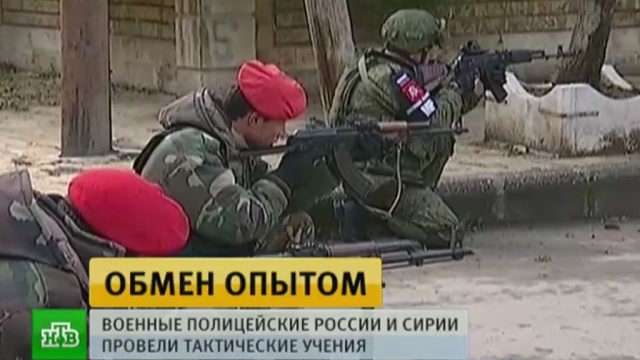 Российские и сирийские военные полицейские отработали несколько задач, включая огневое прикрытие групп в городском бою, эвакуацию раненых, зачистку и осмотр зданий.