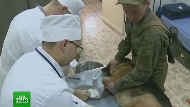 Помощь в новом медцентре готовы оказать не только людям. Одним из первых пациентов стала немецкая овчарка Берта. Она в составе российского отряда саперов участвовала в разминировании Пальмиры, а затем восточных кварталов Алеппо. Несколько дней назад собака неудачно спрыгнула с бэтээра и сломала лапу. Военные медики сделали ей сложную операцию. Обещают, что после реабилитации Берта вернется в строй.