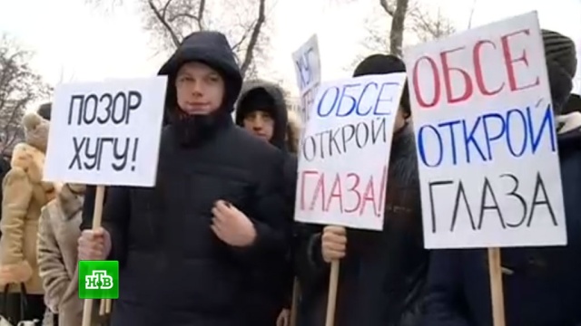 Более тысячи человек собрались сегодня на митинг в центре Донецка. Люди пришли к стенам гостиницы, где живут члены миссии ОБСЕ. Они, как заявляют жители ДНР, за 2 года не сделали ничего для прекращения обстрелов со стороны ВСУ.