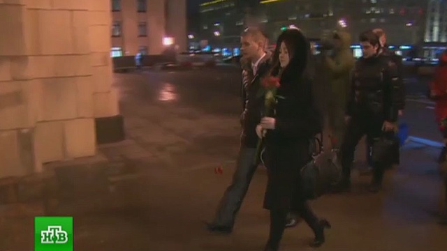 У главного входа в центральное здание министерства иностранных дел на Смоленской площади в Москве появились цветы и свечи, которые принесли обычные москвичи в память о скоропостижно скончавшемся Виталии Чуркине.