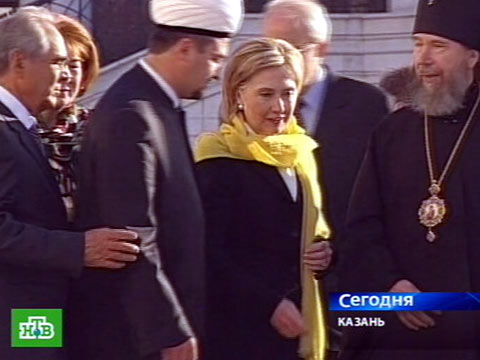 Хиллари Клинтон посетила Казань. Сначала она зашла в мусульманскую мечеть, потом посетила православный храм.
