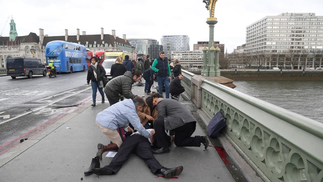 Теракт в Лондоне: неизвестный сбил 12 человек на Вестминстерском мосту и ранил ножом полицейского. Фото с места трагедии.